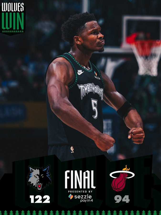 在结束了东部四连客之后,森林狼今天又回到主场迎战热火,最终以122-94战胜热火,取得一场28分的大胜,同时也取得3连胜。这也是森林狼过去3场第二次战胜热火,完成了对热火的双杀。森林狼战绩来到24胜12负,继续排在西部第六,和火箭也不存在胜场差。热火战绩变成20胜17负,和魔术打成平手,排名降至东部第八。