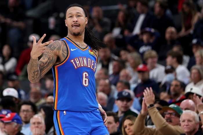 本场比赛,雷霆有多达7人缺阵,缺少了一套首发阵容,以赛亚·乔和卡尔森又在下半场伤退,等于缺少了9名球员。雷霆的表现非常顽强,与活塞缠斗到最后时刻才遗憾输球。杰林·威廉姆斯打出生涯最强一战,14投9中,外线10中5,罚球7中7,轰下30分11篮板4助攻1盖帽1抢断,填满数据栏。30分大幅刷新了杰林·威廉姆斯的单场得分新高,此前的最高分是24分,篮板距离生涯新高也只差1个。